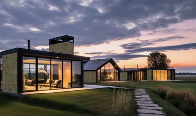 The compound is formed by a collection of three separate structures: Indy House, Center House, and Extension House. The structures are connected by open-air covered breezeways, which enclose with sliding glass walls to become connective rooms themselves. The flexible design of the property allows for individual home footprints to shrink and grow over time; the structures can combine or separate to function as one, two, or three homes, and residents of I.C.E. House can live in as little as 300 square feet, or as much as 5,000. An outdoor entertaining pavilion creates even more living space, enhancing the indoor-outdoor livability ingrained in the architecture.